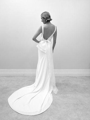 Fern by Love Story London is a beautiful, classic gown. Featuring a high neck, and low v-cut back, she is effortlessly stylish. Fern clings to the body in the most flattering way, and has a small puddle train behind.